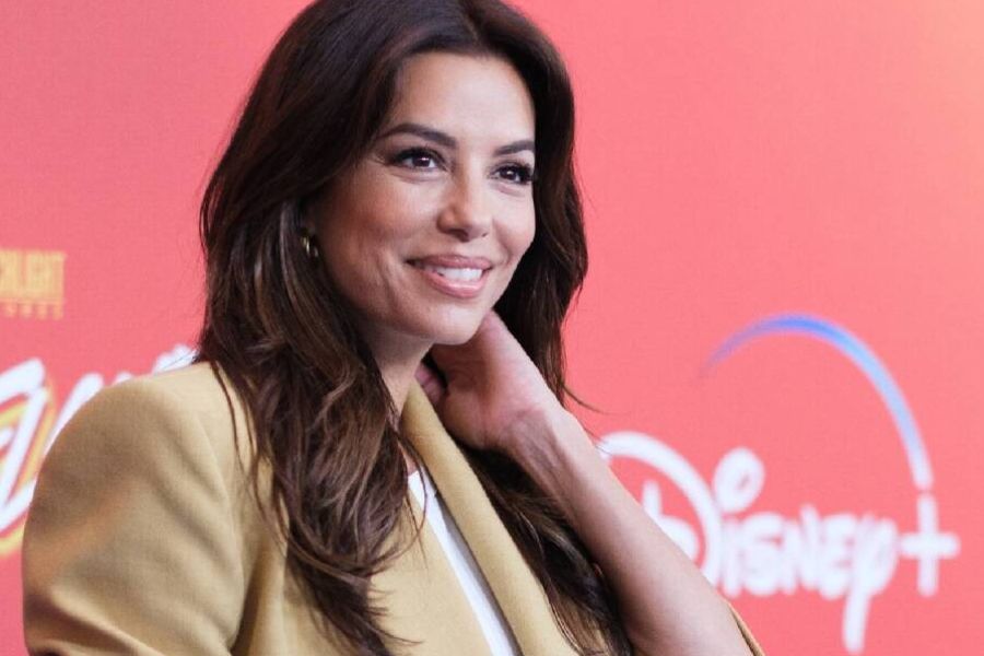 Eva Longoria compartió un mensaje navideño en redes sociales mientras lucía un elegante vestido rosa pálido con destellos de lentejuelas