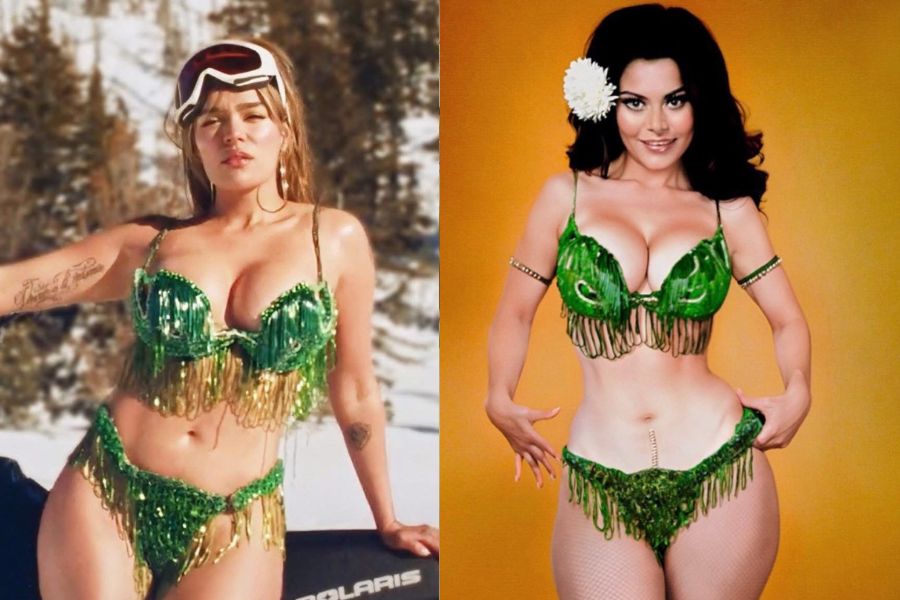 Lo que pocos sabían es que ese traje de baño tiene historia: fue confeccionado en los años 70 por el diseñador Mitzy y perteneció a la legendaria vedette mexicana Rossy Mendoza.