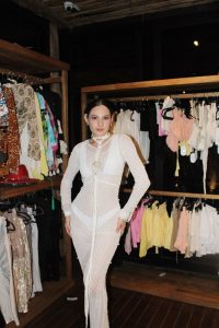 Durante la charla, Briones expresó su emoción por presentar esta colección como parte del concepto Fashion Grillhouse del restaurante. Inspirada en la frescura del mar, su propuesta incluyó elementos característicos del océano como estrellas de mar, conchas, perlas y piedras, integrados cuidadosamente en cada prenda.