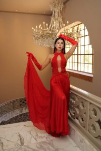 Cancún. — La modelo e influencer Samantha Herrera fue la elegida para portar la más reciente creación de la reconocida diseñadora quintanarroense Patricia Briones, una exclusiva pieza de alta costura en crochet: un vestido rojo de noche tejido y bordado a mano con pedrería de alta calidad, del cual será imágen en su próxima presentación.