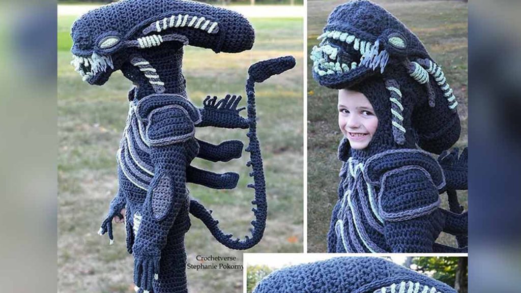 Pero, sin duda, pocos podrán igualar el trabajo de una mamá estadunidense llamada Stephanie Pokorny que cada año teje el disfraz completo de sus hijos.