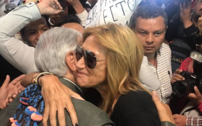 “Ja, ja, ja, me quiere mucho pero no me quiere ni ver”, dice la periodista, al tiempo que abraza nuevamente a Obrador y éste le dice: “Dame un beso”.