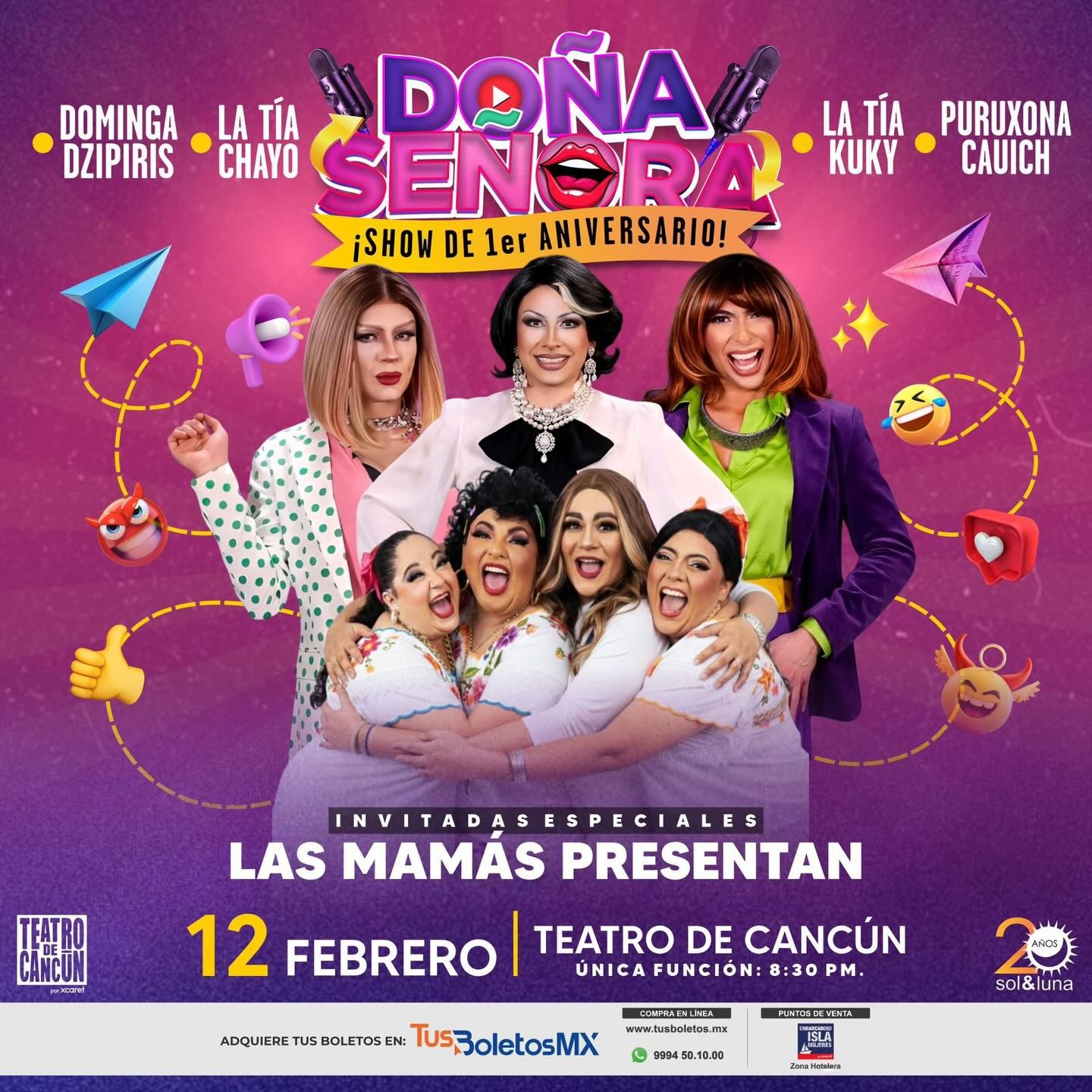 Cancún.- Con la emoción a flor de piel y el humor que la caracteriza, La Tía Chayo celebra el primer aniversario de Doña Señora Podcast con un espectáculo especial en el Teatro de Cancún, acompañada por Dominga Dzipiris, Puruxona Cauich y la Tía Kuky, además de las invitadas especiales Janet, Rebeca y Malena de Las Mamás Presentan.