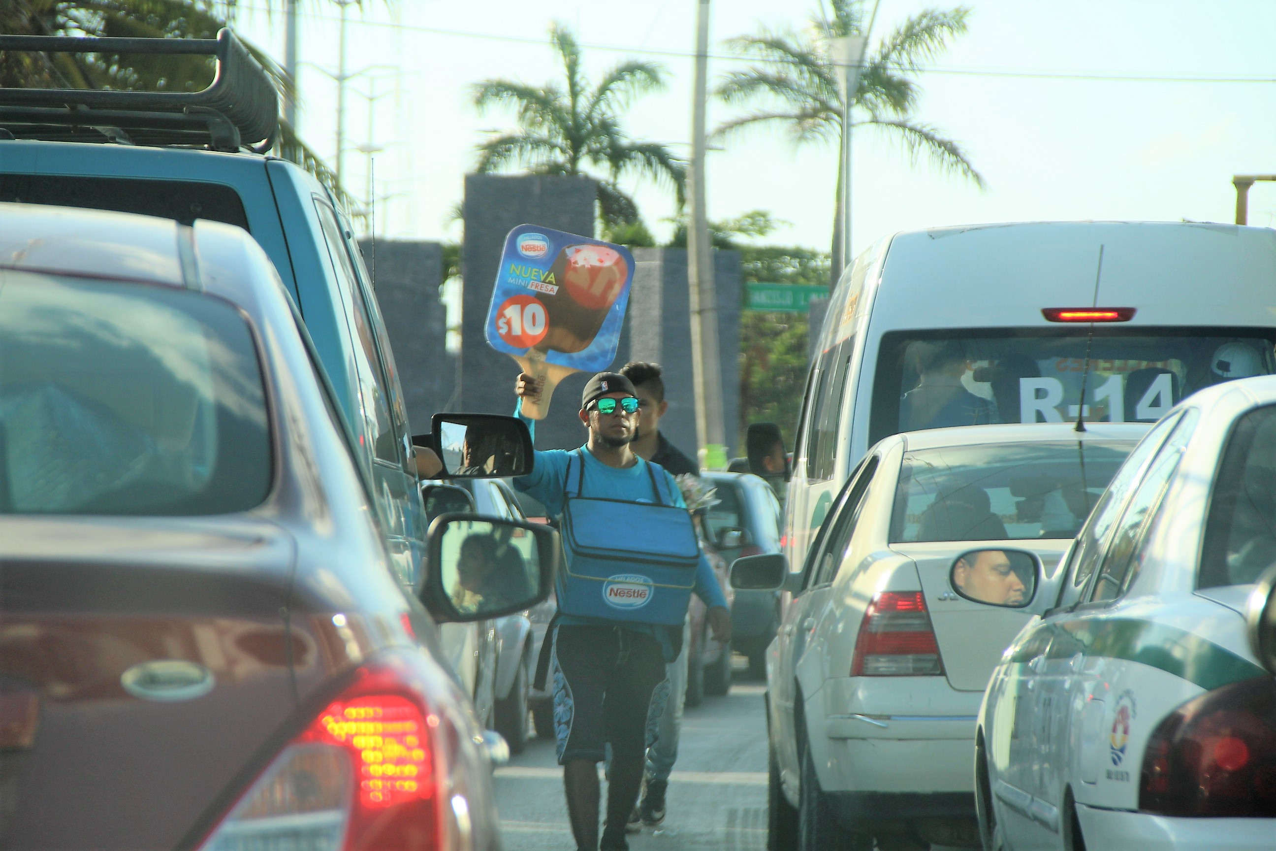Entre el congestionamiento vehicular podemos encontrar a un sinnúmero de niños, jóvenes y personas mayores haciendo de todo y vendiendo toda clase de productos para llevar sustento a sus hogares, aunque a lo largo de su complicada jornada tengan que sortear “laminazos”, faltas de respeto y otras dificultades que se presentan en esta temeraria jungla de asfalto.