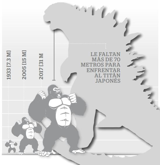El plan de Warner Bros. Pictures con Kong: Skull Island es que la secuela del filme –si tiene éxito en la taquilla– enfrente a Kong con otra criatura legendaria del cine: Godzilla. Si es el caso, vendrían Godzilla 2 y Kong vs Godzilla a continuación. La premisa no es descabellada, pues ya en 1962 hubo una película titulada así: King Kong vs. Godzilla, producida por el estudio japonés Toho. Y se da por hecho que aparecerán otras criaturas de este universo cinematográfico, como Rodan, Mothra y Ghidorah. Será una pelea desigual: Godzilla mide 106.7 metros de altura.