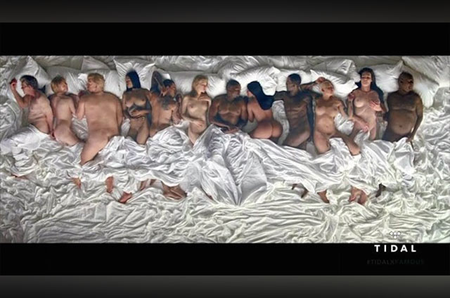 Se trata de su video Famous, que está basado en una pintura de Vincent Desiderio, en donde aparecen varias personas desnudas, pero en esta ocasión son famosos.