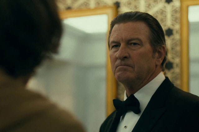 En el trailer apreciamos un motín perpetrado por un grupo de personas con máscaras de payaso y si miras aún más de cerca, además del afiche, se puede ver a una familia saliendo del teatro en medio del caos: un hombre y una mujer bien vestidos con su hijo pequeño. La secuencia se recorta rápidamente, pero parece que se trata de los actores Brett Cullen y Dante Pereira-Olson, quienes interpretan a Thomas Wayne y al joven Bruce Wayne, respectivamente.