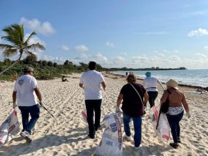 Playa del Carmen.- Se llevó a cabo una jornada de limpieza de playas a lo largo de la costa, comenzando en la calle 72 de la ciudad, en la cual participaron grupos sociales y el sector empresarial, quienes levantaron principalmente colillas de cigarro y botellas de plástico.