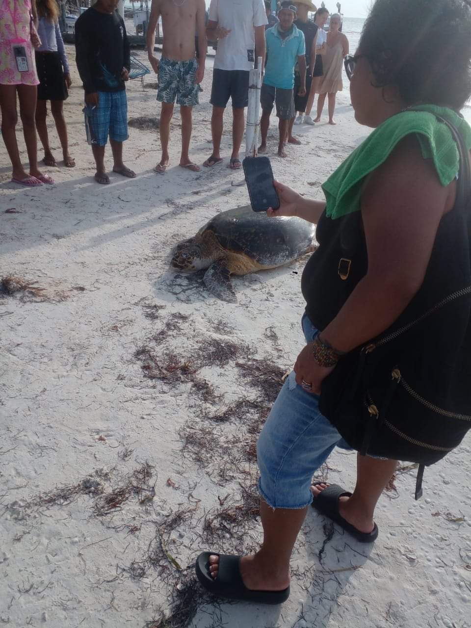 Holbox.- La mañana de este miércoles arribó a las costas de Holbox una tortuga de la especie carey para anidar y depositar sus huevos, lo que sorprendió a turistas y residentes de la ínsula.