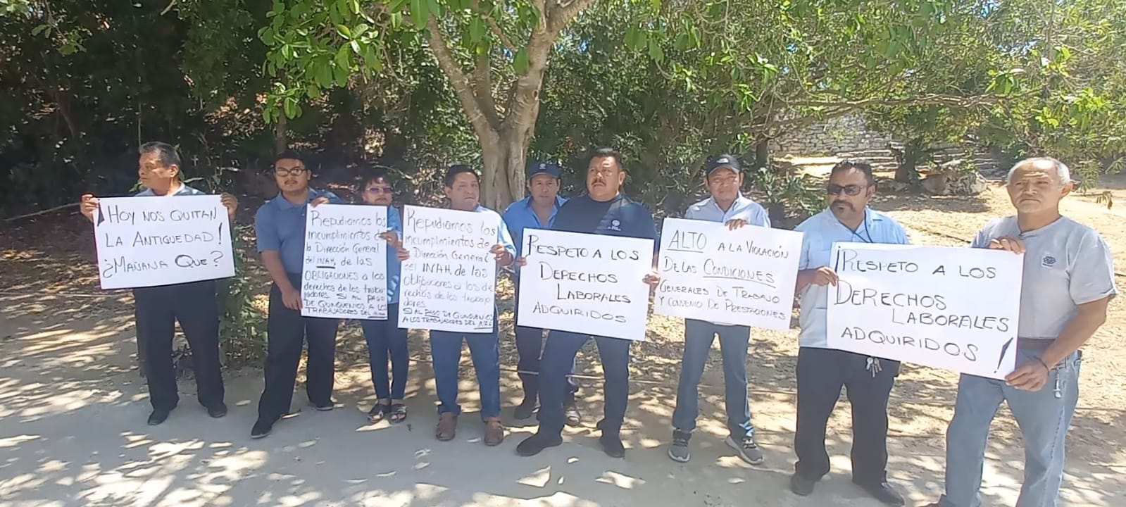 Tulum.-Trabajadores del Instituto Nacional de Antropología e Historia (INAH), afiliados al Sindicato Independiente de Trabajadores de la Secretaría de Cultura (Sinitsec), en Tulum, se manifestaron esta tarde para sumarse al paro que se lleva a nivel nacional en demanda al pago de prestaciones laborales, no percibidas desde hace meses.