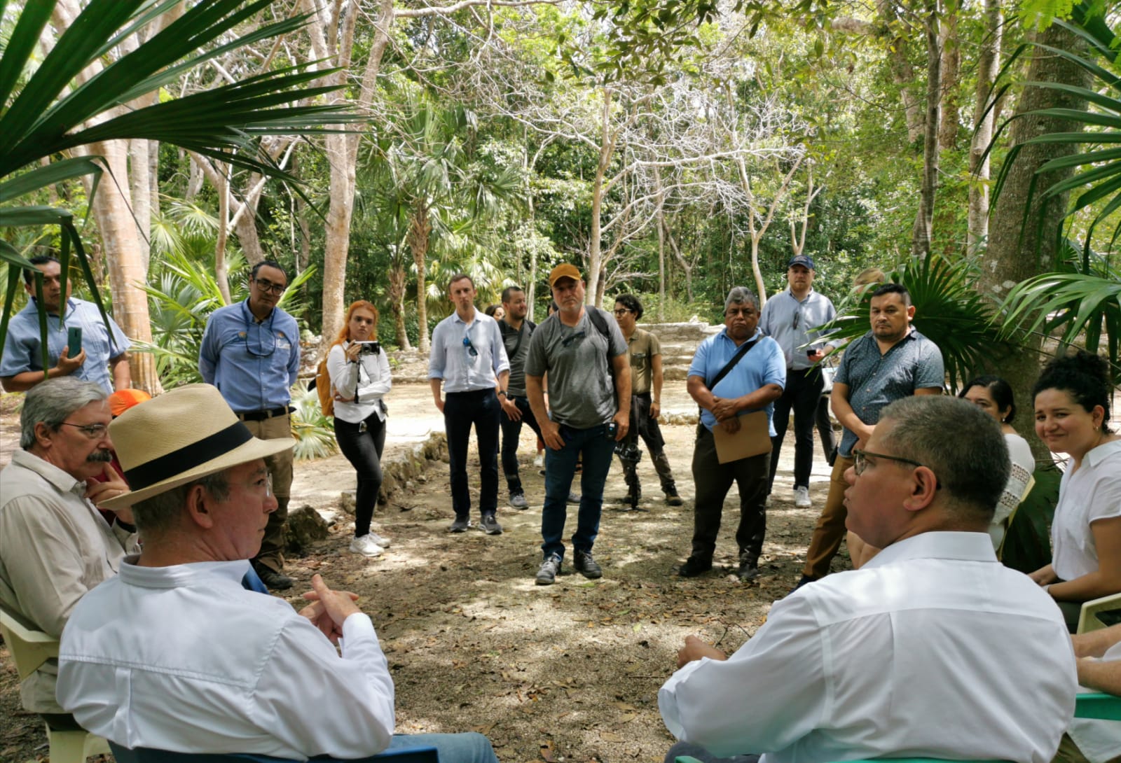 Alok Sharma y la comitiva oficial, entre los que destacó Archie Young Negociador Climático del Reino Unido, Jon Benjamin embajador del Reino Unido en México y Dominic Curran jefe del Fondo Climático Internacional de Reino Unido, visitaron la zona arqueológica de Muyil, realizaron un recorrido por sendero hasta llegar al cuerpo lagunar.