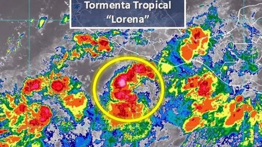 Lorena actualmente se ubica en las costas de Guerrero y se desplazará paralelo a las costas del Pacífico, por lo que se pronostican lluvias de fuertes a muy fuertes sobre Oaxaca, Jalisco, Colima y Michoacán.