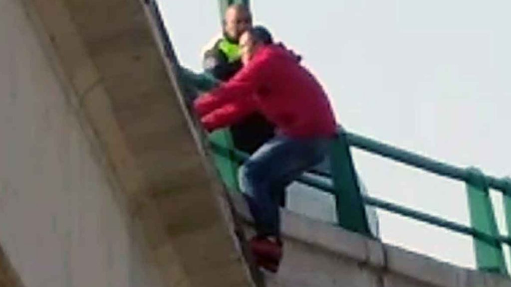 El sujeto quien manejaba una camioneta blanca subió al puente vehicular en la entrada hacia Tultepec, donde se encuentra un centro comercial. Ahí bajó del vehículo, brincó la protección de seguridad con la intensión de lanzarse al vacío.