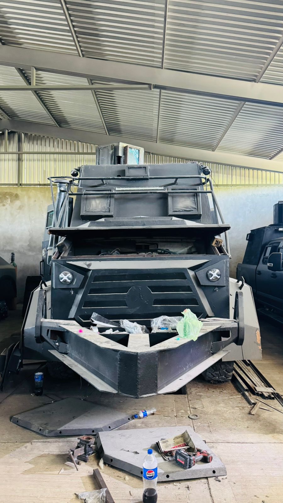 Se explicó que los vehículos asegurados se encontraban en proceso de fabricación para ser equipados con un blindaje improvisado.