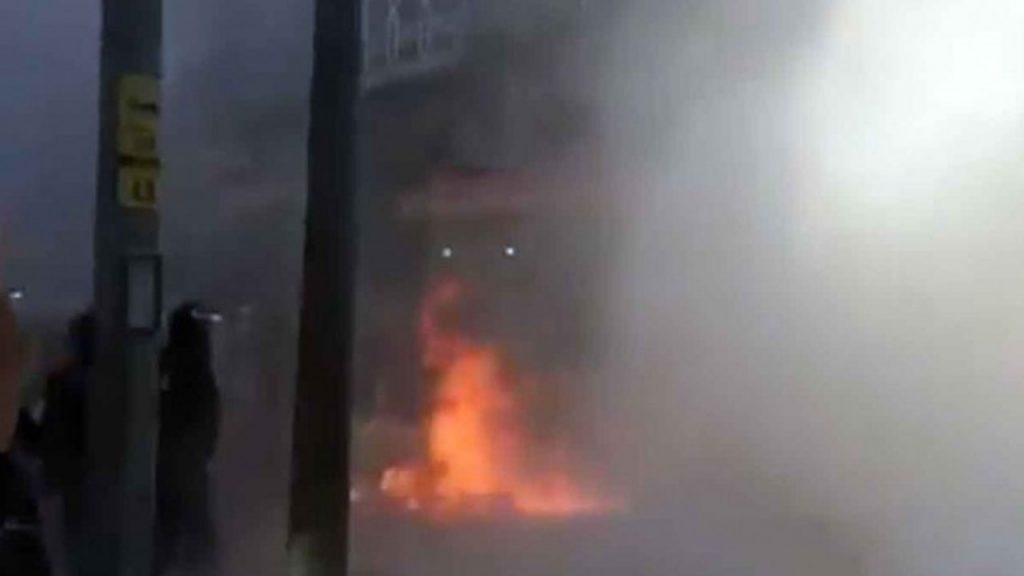 Los manifestantes agredieron a los uniformados, quienes nada pudieron hacer más que apagar el fuego provocado por los artefactos explosivos.