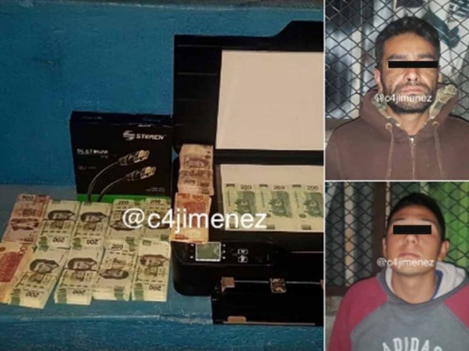 Los agentes preventivos adscritos a la Unidad de Protección Ciudadana (UPC) Morelos, ingresaron a un predio marcado con el número 64, donde lograron asegurar a dos sujetos, quienes con la ayuda de una imprenta ya habían fabricado la cantidad de 269 mil pesos.