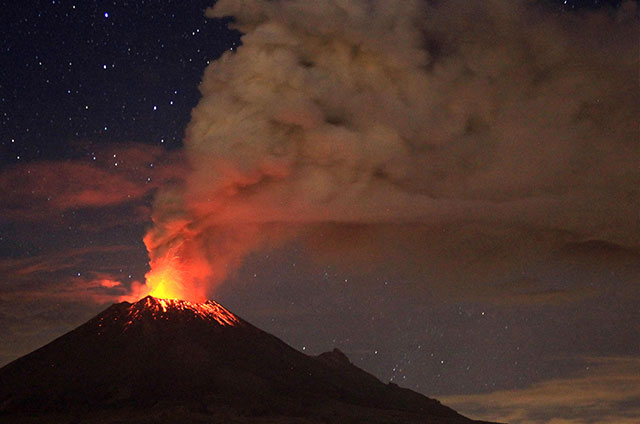 Ciudad de México.- La noche de este viernes 7 de diciembre el volcán Popocatépetl entró en erupción dos veces, emitiendo espectaculares destellos de luz, seguidos de deslumbrante material incandescente que se derramó fuera del cráter y bajó la ladera de la montaña.