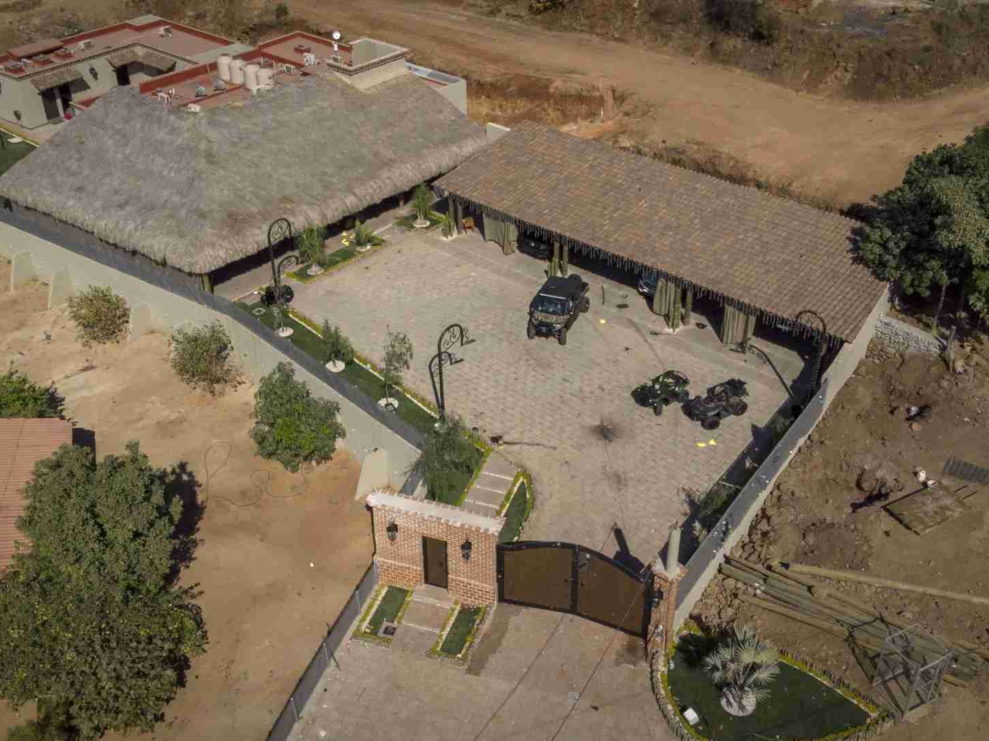 El inmueble con un portón de madera y de poco más de dos metros de altura quedó cubierto de casquillos, al interior a primer vista se puede apreciar la colección de lujosos autos entre los que destacan dos camionetas Mercedes Benz, un razer y dos cuatrimotos.