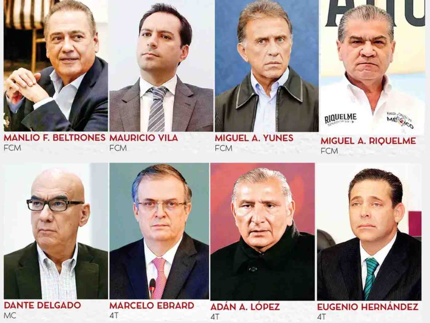 Por parte del oficialismo están José Antonio Álvarez Lima, de Tlaxcala; Jaime Bonilla, de Baja California, y Eugenio Hernández, de Tamaulipas, que son los tres únicos que van por el voto directo en las urnas. A ellos se suman, por la vía plurinominal, Adán Augusto López, de Tabasco; Javier Corral, de Chihuahua; Marcelo Ebrard, de la CDMX; Alejandro Murat, de Oaxaca, y Manuel Velasco, de Chiapas.