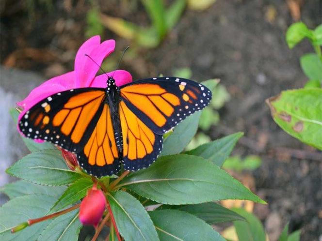 Experta en el tema, Jacqueline explicó que la Monarca hembra se distingue del macho porque sus alas traseras lucen limpias, se observan los tonos vivos color naranja y las venas negras (una glándula que produce feromonas) sin puntos negros, además de que en el borde, en las alas tiene más pecas blancas que el macho.