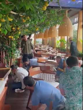Varios videos han comenzado a viralizarse en redes sociales, pues se puede ver a varios comensales arrojandose al piso para salvaguardarse.