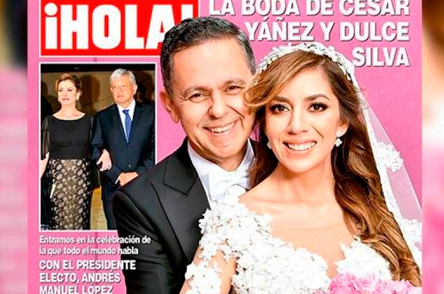 La boda de César Yáñez Centeno y Dulce Silva, a la que acudió Andrés Manuel López Obrador, es la protagonista de la portada de la revista ¡Hola!. “Esta semana en ¡HOLA!, disponible los jueves, entramos en la celebración de la que todo el mundo habla”, aseguran en su página web.