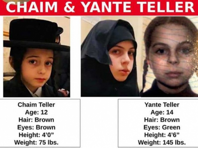 Chaim Teller tiene 12 años, es de tes blanca, pesa unos 34 kilogramos y mide 1.22 metros; Yante Teller, es caucásica, de 14 años cabello y ojos castaños