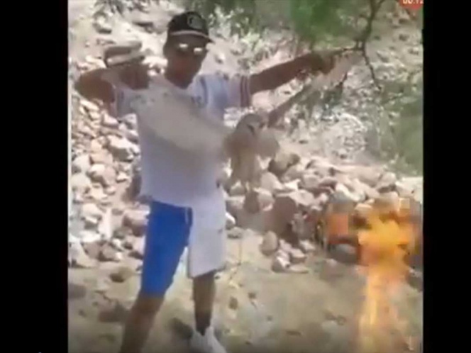 En un video que circuló en redes sociales se aprecia como el sujeto le prende fuego a un ejemplar vivo de lechuza de campanario (Tyto alba).