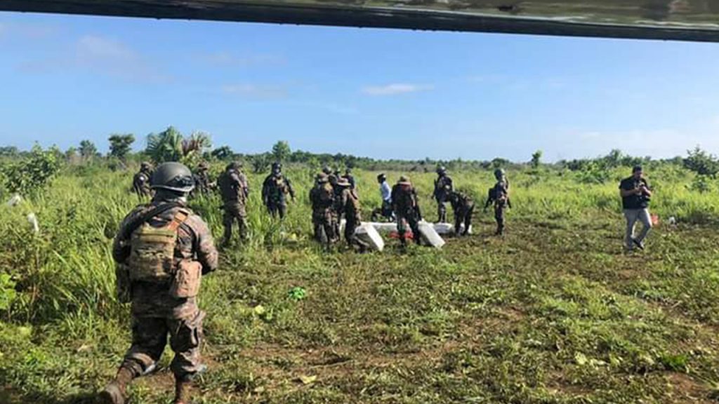 Personal del Ministerio Público y de la Policía Nacional Civil fue trasladado en aeronaves de la Fuerza Aérea Guatemalteca para comenzar con los procedimientos legales correspondientes y han localizado, además de la droga, 3 tolvas de AK-47 con munición.