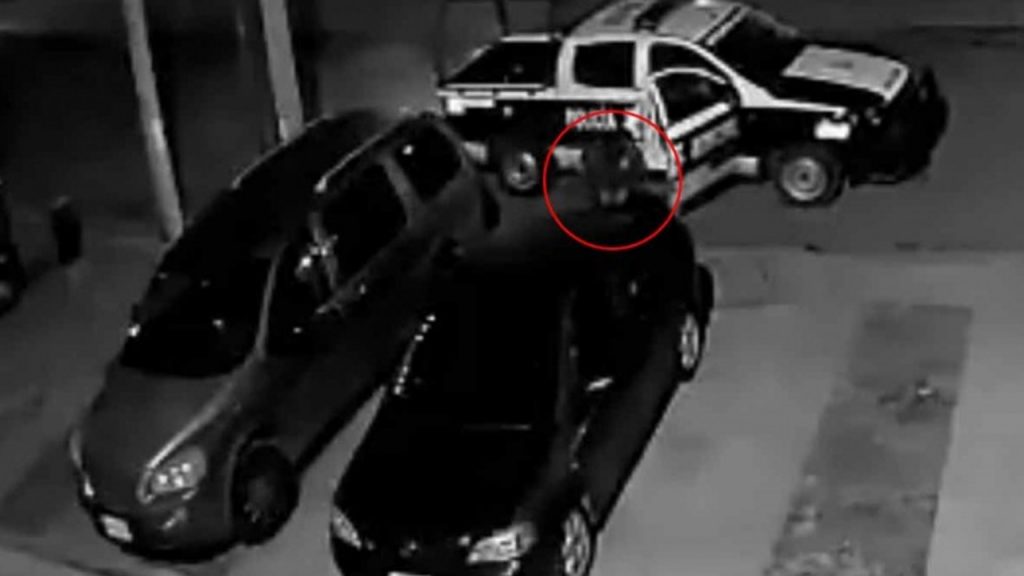 CIUDAD DE MÉXICO.- Cámaras de videovigilancia captaron el momento en que un agente de la Policía Municipal roba lo que parece ser la antena de un vehículo estacionado en el fraccionamiento Vista Verde en Nicolás Romero, Estado de México.