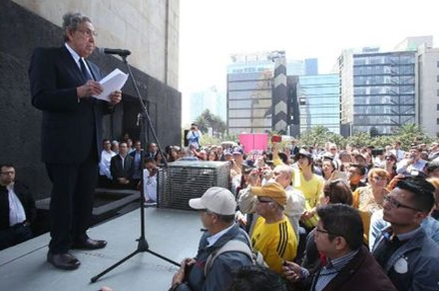 El fundador y ex dirigente del PRD montó este mediodía una guardia de honor en el sepulcro del general Lázaro Cárdenas en el Monumento a la Revolución y después dirigió un mensaje conmemorativo del aniversario de la Expropiación Petrolera.