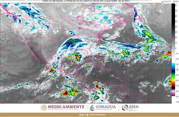 CDMX.- La llegada del frente frío número 5, remanentes del ciclón tropical Lidia, en interacción con la corriente en chorro subtropical, un canal de baja presión, humedad del Golfo de México y la llegada de la onda tropical 29, generarán lluvias muy fuertes, bajas temperaturas de hasta 0 grados en partes altas del territorio nacional, posible caída de granizo , evento ‘Norte’ y tolvaneras, esto según el pronóstico del Servicio Meteorológico Nacional (SMN) de la Comisión Nacional del Agua (Conagua).