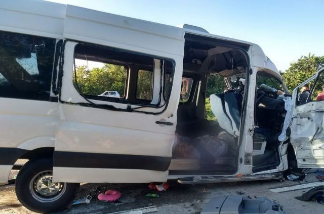 Elementos de la policía municipal de Cárdenas, así como los servicios de emergencia se trasladaron hasta el lugar en donde encontraron una unidad tipo Splinter, de la marca Mercedes Benz del servicio público, el cual presuntamente colisiono con un volteo.