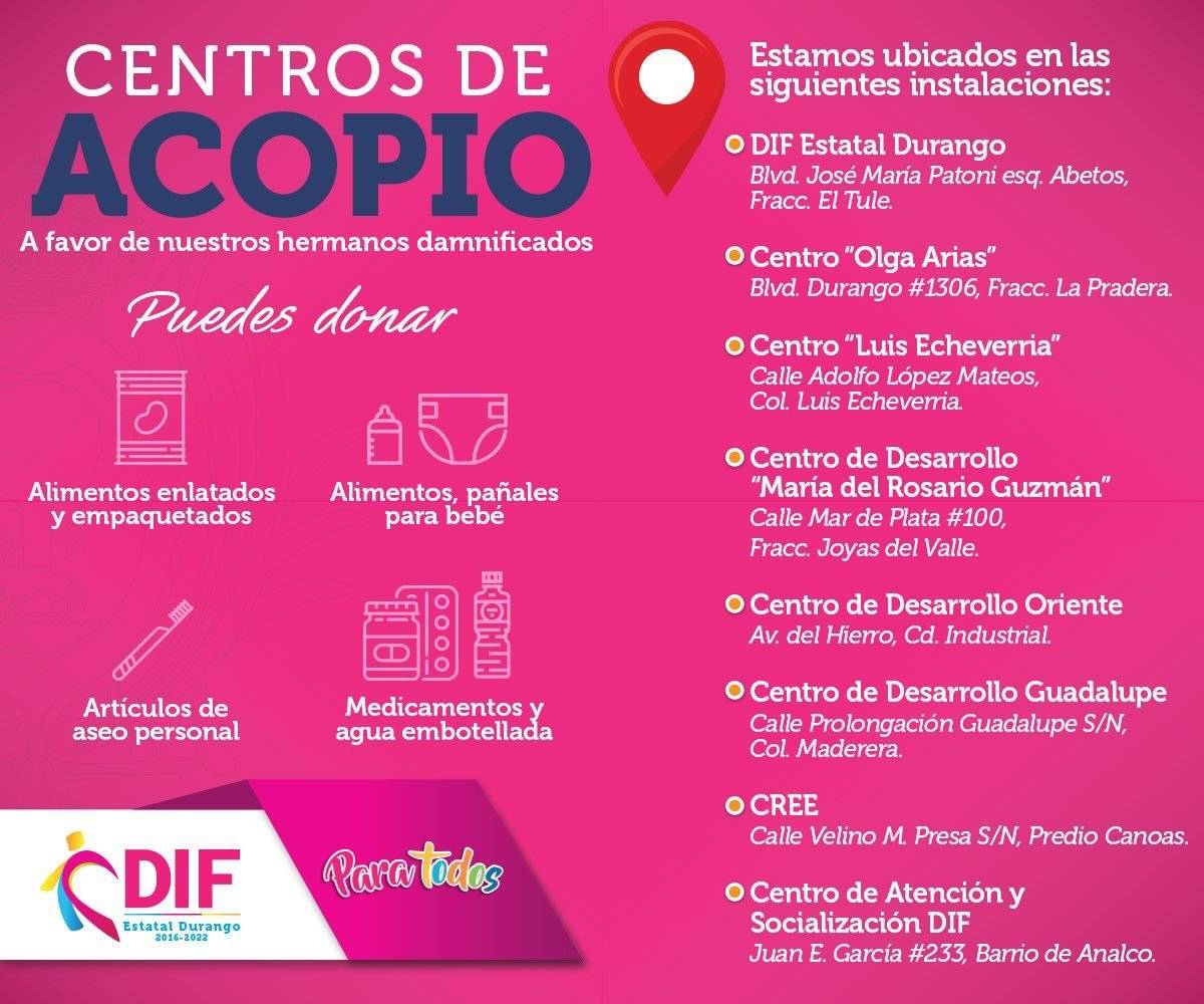 En la mayoría están recibiendo: cobijas, ropa en general, impermeables, botas de plástico para lluvia, productos enlatados, frijol, arroz, sopa de pasta, aceite, atún en bolsa, leche en polvo, papel higiénico, jabón, toallas sanitarias, pañales, cepillos, pasta dental.