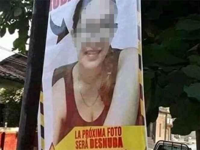 El espacio de Informativo Nuevo León dio seguimiento a la causa provocada por los maridos. En la pancarta se aprecia la leyenda: “La próxima foto será desnuda, para que aprendas a respetar”.