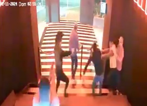 Cuando parecía que todo terminaría, el hombre que volvió a entrar al bar fue perseguido hasta la entrada por una persona vestida con camisa negra y pantalón gris que lo golpeó en la cara pese a que personal de seguridad del lugar trató de evitar la confrontación.