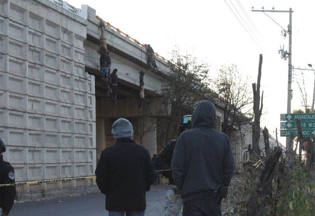ZACATECAS.- El día de hoy por la mañana fue reportado el hallazgo de 9 cuerpos que se encontraban colgando de un puente en la ciudad de Cuauhtémoc, Zacatecas.