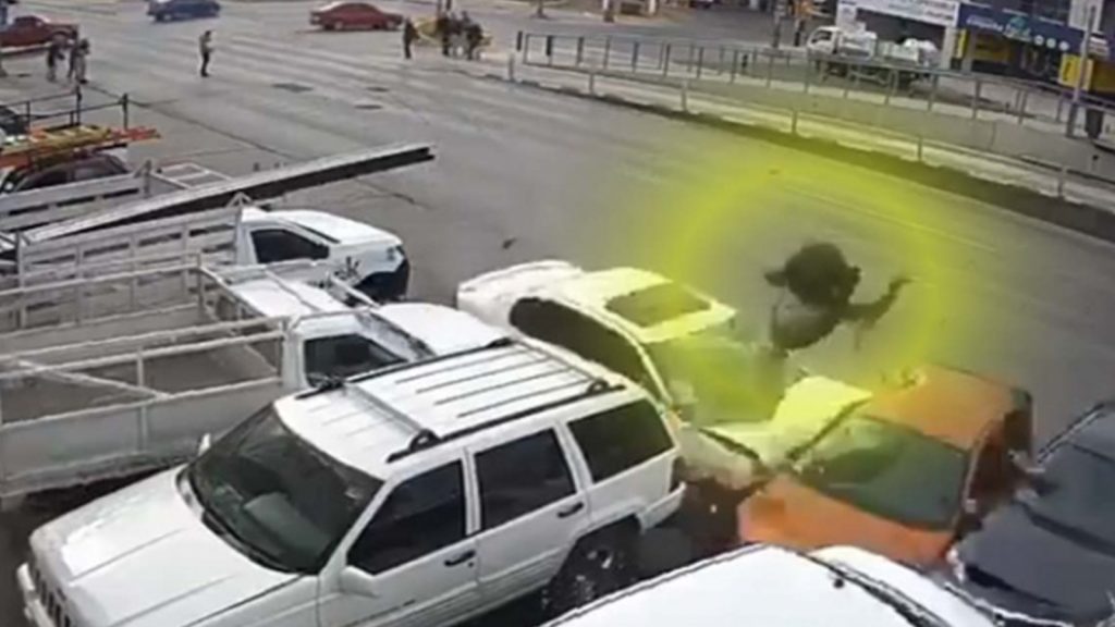 Debido a la velocidad del auto, no pudo reaccionar y salió volando, dio una vuelta de 360 grados y fue a caer entre dos vehículos.