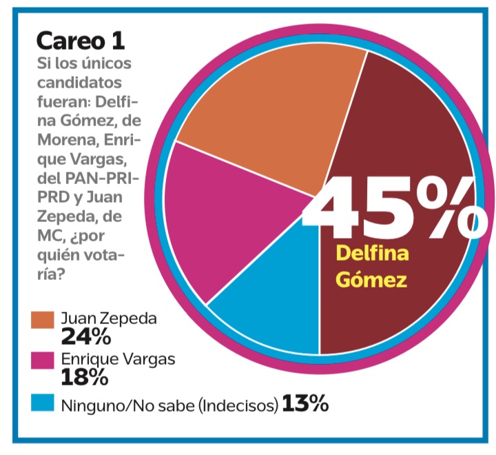 realizados por Encues- tas, Datos y Análisis de Grupo Cantón en el Edomex, se hizo un comparativo de los dos mejores perfiles de Morena en la entidad mexiquense frente a los aspirantes de la oposi- ción (PRI, PAN, PRD y MC), ganando de cual- quier modo.