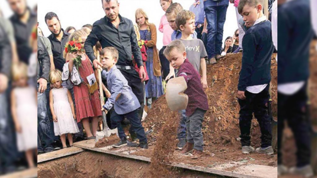 Sobre un sencillo féretro de madera, hecho por los mismos mormones, fueron colocadas imágenes de Christina en la que aparece con sus hijos y su esposo que le sobreviven.