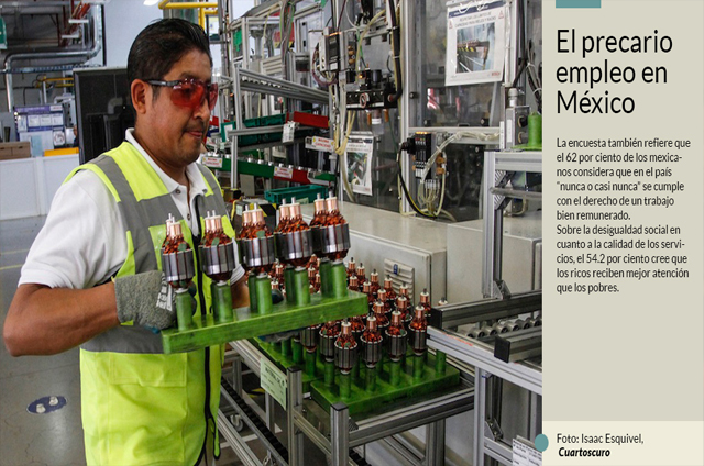 Ciudad de México.– Seis de cada diez mexicanos han visto una disminución en su ingreso en los últimos meses y creen que tener un trabajo bien remunerado es un derecho social que “nunca o casi nunca” se cumple en México, así lo reveló la encuesta “Derechos Sociales y Cohesión Social”, realizada por el Centro de Estudios Sociales y de Opinión Pública (CESOP), que depende de la Cámara de Diputados.