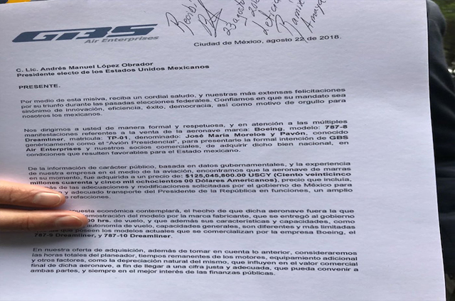 En entrevista a medios reunidos afuera de la casa de transición de López Obrador, ubicada en la colonia Roma de la Ciudad de México, dijo que está interesado en adquirir la aeronave porque será hasta el año 2020 cuando se conseguirán en el mercado y pretende utilizarla como taxi aéreo VIP, a un costo de 20 mil pesos la hora.