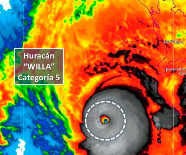 CIUDAD DE MÉXICO- El huracán Willa alcanzó la categoría 5 de la escala Saffir-Simpson frente a las costas de Jalisco, informó este lunes el Servicio Meteorológico Nacional (SMN).