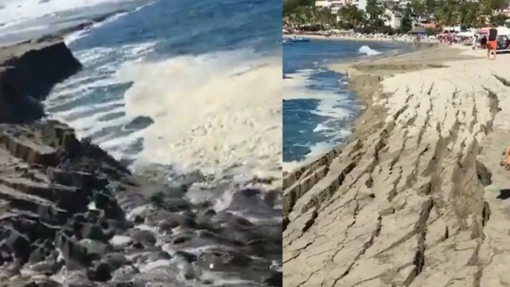 La playa se ubica en el municipio de San Pedro Mixtepec en la costa oaxaqueña. Hasta el momento las autordades han dicho que no es algo alarmante, sino que es “un fenómeno transitorio”.