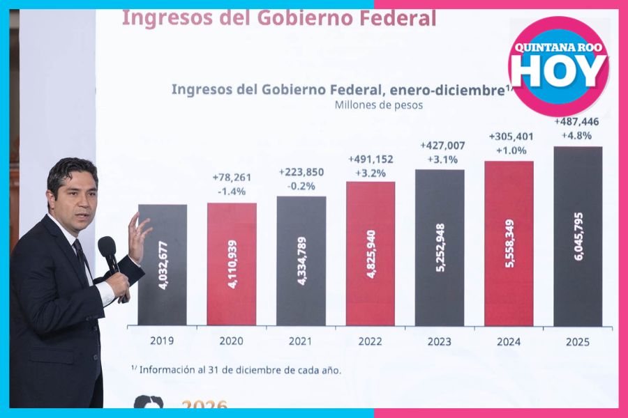 Para 2026, adelantó, se proyecta recaudar 496 mil 309 millones de pesos más que el año anterior.