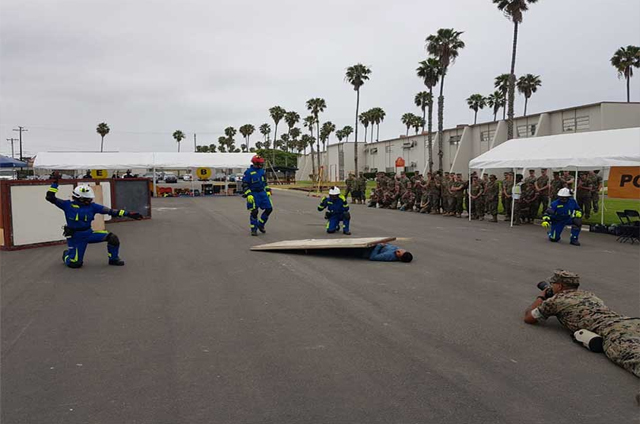 La demostración de capacidades de la USAR-SEMAR se llevó a cabo en la 15 Unidad Expedicionaria de los Marines, con una demostración en una estructura colapsada.