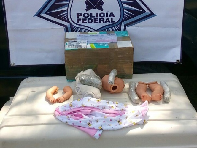 Al quitarle un mameluco de color rosa, era posible desprenderle los brazos y cabeza de plástico, dentro de los cuales se ocultaban seis paquetes de forma irregular, elaborados con cinta canela, conteniendo el enervante”, explicó la Policía Federal.