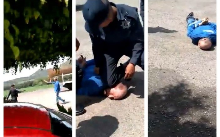 Al momento de ser esposado, el sujeto no dejó de amenazar y asegurar que no porque estuviera pelón estaba loco, ni tampoco porque le dieran droga mala estaba así. “Tomé de la buena, pend… que es el maíz, el trabajo, el fruto de los hombres”.