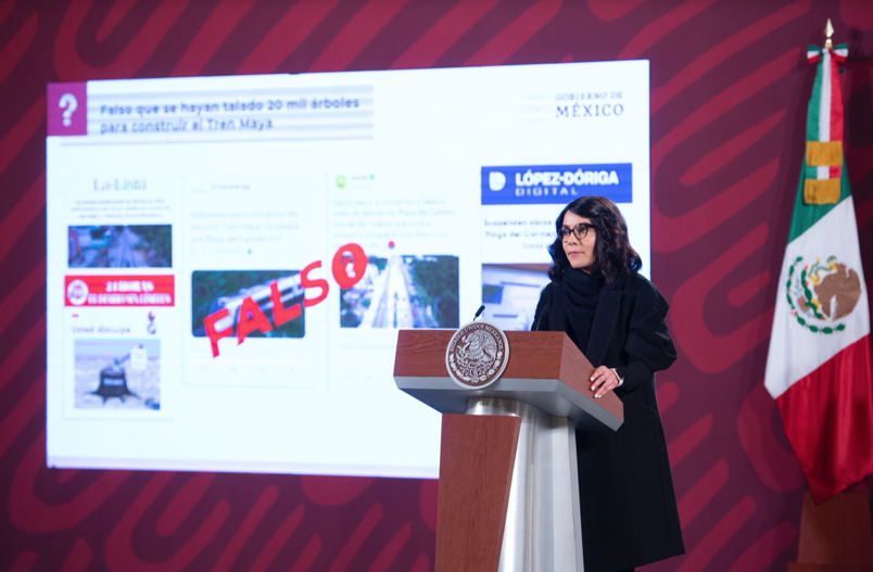 MÉXICO.- Es falso que se hayan talado 20 mil árboles para construir el Tren Maya en el camellón de la carretera Cancún-Playa del Carmen, en Quintana Roo. Así lo afirmó este miércoles Ana Elizabeth García Vilchis durante la conferencia matutina del presidente Andrés Manuel López Obrador (AMLO).
