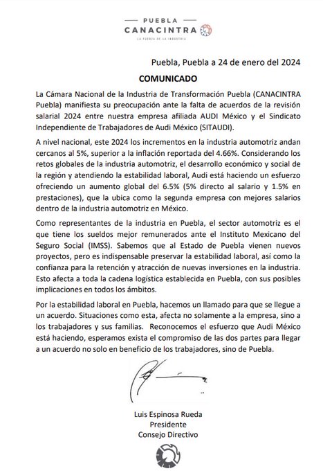 Esta es la primera huelga que se vive en la empresa Audi, desde su instalación en San José Chiapa, Puebla, en 2017 durante el gobierno del ex mandatario Antonio Gali Fayad.